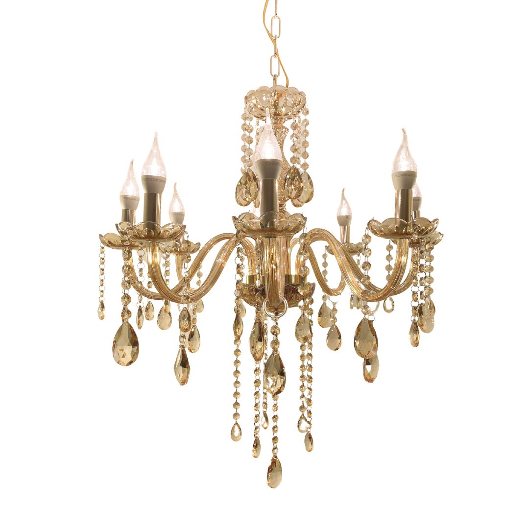 Lustre Luminária De Cristal Champanhe Luxo 8 Braços